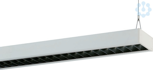 Anbauleuchte für die Pendelmontage, bandfähig, direkt-indirekt strahlend. Bei Bandmontage optisch durchgehendes Raster. Leuchtengehäuse aus Stahlblech, weiß (ähnlich RAL9016) pulverbeschichtet. Leuchtenoberseite gelocht für Indirektanteil. Für rein direktes Licht ist zum Abdecken der Indirektlochung eine optionale Abdeckung als Zubehör erhältlich. Leuchte inklusive Stirnteile aus UV-beständigem Kunststoff. Leuchtenverbinder aus UV-beständigem Kunststoff sind separat zu bestellen, siehe Zubehör. Raster beidseitig abklappbar und selbstständig in die elektrischen Schutzmaßnahmen einbezogen. Parabolspiegelraster SM, aus reflexionsverstärktem, seidenmatt eloxiertem Reinstaluminium mit Silberbeschichtung. Bei Bandmontage optisch durchlaufend. Leuchtenstirnteile aus UV-beständigem Kunststoff im Lieferumfang enthalten. Inklusive Leuchtmittel RIDI-TUBE 360. Montage: Pendelleuchte für Einzel- und Lichtbandmontage. Leuchte mit vormontierter, transparenter Anschlussleitung und Seilabhängung 1,5m, stufenlos höhenverstellb
