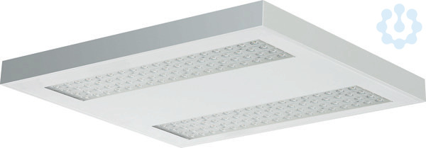 LED-Anbauleuchte Einzelleuchte. Stabiles Leuchtengehäuse aus Stahlblech, weiß (ähnlich RAL9016). Linsenoptikarrays für maximale Effizienz, 4-reihig mit quadratisch ausgeprägter Linsenformgebung. Lichtlenker mit Federbügeln im Leuchtengehäuse gehalten, beidseitig abklappbar. LED-Module als Flächenplatine ausgebildet. Mid-Power LEDs für gleichmäßige Ausleuchtung und maximale Effizienz. LED-Treiber in Leuchte eingebaut. Breite der Leuchte: 626mm. Lichtlenkung über quadratische Linsenoptik für maximale Effizienz mit breitstrahlender Charakteristik. Montage: Deckenmontage mit beiliegendem Zubehör.