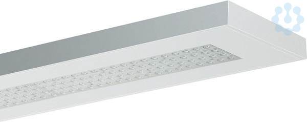 LED-Anbauleuchte Einzelleuchte. Stabiles Leuchtengehäuse aus Stahlblech, weiß (ähnlich RAL9016). Linsenoptikarrays für maximale Effizienz, 4-reihig mit quadratisch ausgeprägter Linsenformgebung. Lichtlenker mit Federbügeln im Leuchtengehäuse gehalten, beidseitig abklappbar. LED-Module als Flächenplatine ausgebildet. Mid-Power LEDs für gleichmäßige Ausleuchtung und maximale Effizienz. LED-Treiber in Leuchte eingebaut. Breite der Leuchte: 314mm. Lichtlenkung über quadratische Linsenoptik für maximale Effizienz mit breitstrahlender Charakteristik. Montage: Deckenmontage mit beiliegendem Zubehör.