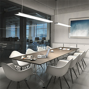 Minimalistische Anbau- und Pendel LED Leuchte, mit Microprismen-Optik, Leuchten Leistung: 38,9 W, DALI steuerbare Leuchte mit LED-Konverter, LED-Lebensdauer 50000 h bis zu einem Lichtstromrückgang auf 90 % des Anfangswertes. Farborttoleranz (initial MacAdam): 3. Leuchten Lichtstrom: 4400 lm, Leuchten Lichtausbeute: 113 lm/W. Farbwiedergabe Ra > 90, Farbtemperatur 4000 K. Lichtlenkung über patentierte Curved Wave Guide Lichteinkopplung und MPO-plus Micropyramid-Struktur-Optik mit Mehrschichtaufbau für definierte Auskopplung mit UGR < 19 und L< 3000 cd/m² bei 65° für Bildschirmanwendungen, Geräteträger aus Aluminiumstrangpressprofil weiß lackiert, Leuchte bestehend aus Optik und Geräteträger, Design-Endkappen (erhältlich in unterschiedlichen Farben) und Abhängeset sind separat zu bestellen. Leuchte halogenfrei verdrahtet. Glühdrahtprüfung: 650°C, Abmessungen: 1512 x 152 x 48 mm, Gewicht: 7,4 kg