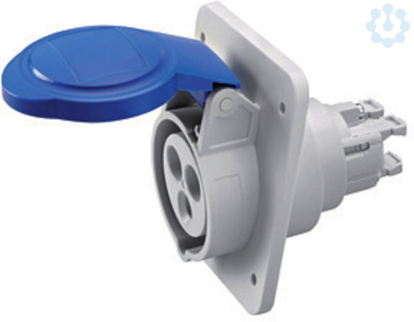 Anbausteckdose fuer industrielle Anwendungen gemaess IEC 60 309 (EN 60 309) Neigung 10° vernickelte Kontakte, Metallteile aus Edelstahl, Kunststoffteile halogenfrei gemaess EN 50 267-2-2, Anschlusstechnik: schraubenlose Zugfederklemme, Anschlussquerschnitt 1 - 2,5 mm² feindraehtig / 1,5 - 4 mm² ein- oder mehrdraehtig, , UV Bestaendig, Stossfestigkeit IK09