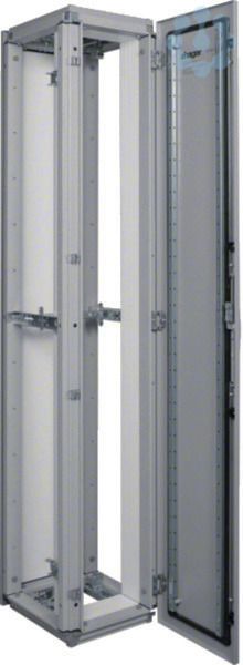 Anreihstandschrank, univers, IP 54, Schutzklasse II, 1900x360x400 mm. Anreihstandschrank für die Innenraummontage nach VDE 0660 Teil 600-1/-2, DIN EN 61 439-1/-2, Maße nach DIN 43870 Schutzart IP 54 nach DIN EN60529 (VDE0470-1), Schutzart IP 3x bei offener Tür, Luft- und Kriechstrecken nach VDE 0110, Teil 1 und 2/1.89, Bemessungsisolationsspannung AC 800 V, Überspannungskategorie IV, Verschmutzungsgrad 3, Schutzklasse II. Standgehäuse für Einzel- oder Reihenaufstellung mit abnehmbaren Rück- und Seitenwänden, Breite 1- bis 6-feldig, 144 bis 864 Platzeinheiten. Innenausbausystem einbaubar für Netzsysteme: 3 AC 50 Hz 230/400 V oder 3 AC 50 Hz 400/690 V mit einem maximalen Einspeisestrom von 1600 A. Schrankgerüst aus glasfaserverstärktem Kunststoff, Deckblech und Rückwand aus feuerverzinktem Stahlblech. Mit waagrechter Abfangschiene zur Tragschienen-Stabilisierung, Koppelplatten zur Tragschienenbefestigung, vorbereitet für univers N Innenausbausystem. Sammelschienendurchführung durch offene Seitenwände nebeneinan