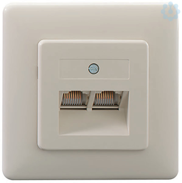 2-fach UAE-Steckdose, reinweiß (ähnlich RAL 9010), mit LSA-Kontakten, mit Spreizkrallen, - universell anschaltbar, - Stecköffnung für 6- und 8-polige Stecker (RJ12 und RJ45), - 2x8-polig, - 2x8 LSA-Kontakte, - mit Kunststofftragstegen, - metrische Schrauben für Zentralstücke, - für Designabdeckungen der Schalterindustrie geeignet (Berker, Busch-Jaeger, GIRA, JUNG, Merten u.a.)