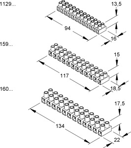 Euro-Klemme nach DIN EN 60998, mit 12 abtrennbaren Klemmstellen, halogenfrei. Abmessungen (ca. Maße) H x B x L : 17,5 x 22 x 134 mm Klemmbereich eindrähtig, starr : 2,5 - 10,0 mm² Werkstoff Isolierteil : PA Werkstoff Klemmbolzen : Messing Werkstoff Klemmschrauben : galvanisch verzinkter Stahl Max. Umgebungstemperatur nach EN 60998 : T85 Nennspannung : 450 V Farbton : natur