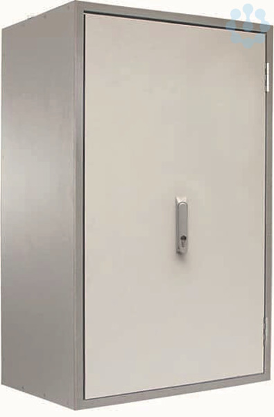 Brandschutz-Wandschrank, Baureihe AF, Leerschrank, Montageart: Aufputz, für den Innenbereich, mit Tür, Baustoff nach A2 - nicht brennbar, geprüft nach DIN 4102-1, Feuerwiderstand 90 min. geprüft nach DIN 4102-2, rauchdicht, kaltrauchdicht, Bemessungsbetriebsspannung Ue 400V AC 50/60 Hz, oberflächenbeschichtet ähnlich RAL 7035, Gehäuse aus nicht brennbarem Material, einflüglige Tür, Tür aus nicht brennbarem Material, mit Schwenkhebel mit Halbzylinder, Türöffnungswinkel 180 Grad, Türanschlag rechts, Leitungseinführung oben über Kabelschott, unten über Kabelschott, Vorbereitet für den Ausbau mit CombiLine-Modulen auf EDF-Montagegerüst