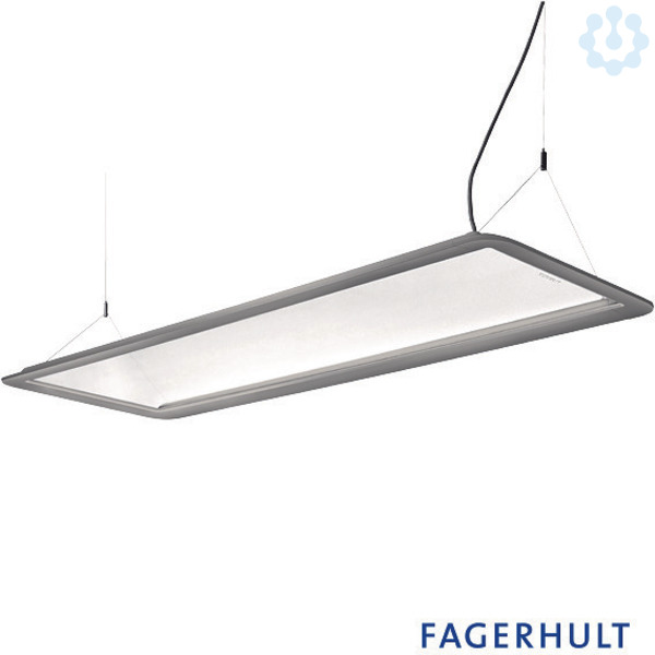 Rechteckige Pendelleuchte mit direkt-indirekt Beleuchtung für ausgewogenes Raumambiente, Lichtanteil: direkt 60% / indirekt 40%, hohe Wartungsfreundlichkeit, Gehäuse aus Aluminium und Stahlblech mit abgerundeten Ecken, Standardbaldachin aus weißem Kunststoff (auch geeignet zum Einlegen in Hohldecke), höhenverstellbare Y-Drahtseilabhängung 2-fach (Länge: 1500 mm), Anschlussleitung transparent, Diffusor aus prismatischem Acrylglas mit seitlicher Lichteinspeisung (im ausgeschalteten Zustand wirkt der Diffusor transparent), einfache Schraubmontage des Deckenbaldachins, Leuchte anschlussfertig mit Baldachin und Einspeisung, Betriebsgerät (LED-Konverter DALI, dimmbar) integriert in Deckenbaldachin Leuchtmittel: LED Modul | 830 | CRI 80 | 3000 K Lebensdauer: L100 B50 50.000 h