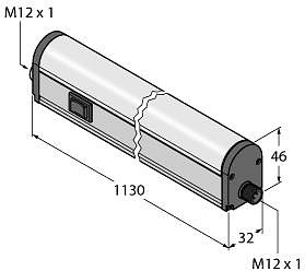 Arbeitsleuchten, Linienleuchte, Kaskadierbar über Kupplung, M12 x 1, 4-polig, Kipp-Schalter (50% / AUS / 100%), Betriebsspannung: 12...30 VDC, Steckverbinder M12x1, Farbe: Tageslicht-Weiß (5.000K ± 300K)