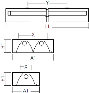 argon Aufbaurasterleuchte 3110n.LED2 Doppelparabolraster, Länge 1200mm 1220 x 290 x 76 mm