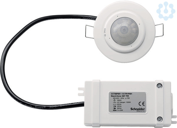 Bewegungsmelder für Zwischendecken im Innenbereich. 360°- Flächenüberwachung. Attraktiver kleiner Sensor. Der Sensor erkennt die Bewegung im Raum. Schaltet das Licht ein und lässt es eingeschaltet, bis keine weitere Bewegung erkannt wird. Schnelle und einfache Einstellungen für Einschaltdauer, Empfindlichkeit und Lichtempfindlichkeit. Das Gerät besteht aus dem Sensor und einer Leistungsbox mit einem fest angebrachten Kabel (35 cm). Der Sensor wird in 63 mm breiten Deckenöffnungen installiert. Netzspannung 220-240 V AC, 50 Hz. Max. Schaltstrom 10 A, AC 220-240 V, cos Phi 0,6. Nennleistung Glühlampen 1000 W. Halogenlampen AC 230V 1000 W. Halogen mit elektronischem Wandler 250 VA. Halogen mit Eisenkerntransformator 500 VA. Erfassungswinkel 360° Bereich Radius von max. 4 m (bei einer Einbauhöhe von 3 m). Lichtempfindlichkeit (Lux-Einstellung) 5-2000 Lux. Zeiteinstellung ca. 5 s bis ca. 8 Min.
