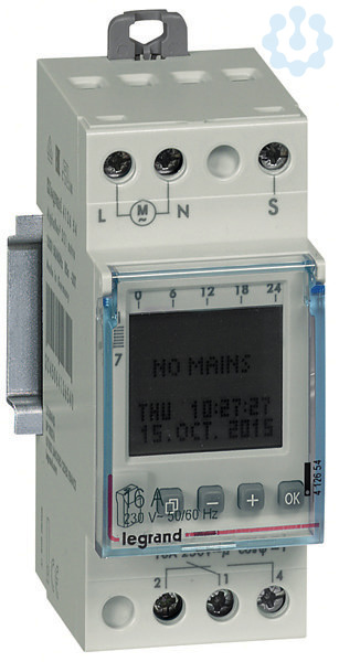 Legrand AlphaRex³ D21 astro, Astrozeitschaltuhr mit Kombifunktion, 1 Kanal, 56 Schaltprogramme, Betriebsspannung 230 V 50/60 Hz, Astrofunktion (Sonnenunter/-aufgänge) kombinierbar mit Wochenzeitschaltuhrfunktion. Steuerung direkt aus der Verteilung, kein separater Lichtfänger notwendig. Programmerstellung direkt am Gerät oder mit PC, AlphaSoft, PC-Adapter(412873) und Datenschlüssel(412872). Dauer EIN/AUS, Ferienprogramm, Zufallsprogramm, 1 Std.-Test, PIN-Code Sperre, Betriebsstundenzähler, Hintergrundbeleuchtung, Steuereingang, automatische Sommer-/Winterzeitumstellung, 5 Jahre Gangreserve, Ganggenauigkeit +/- 0,1 Sek/Tag, Kürzeste Schaltzeit: 1 Sek., Nulldurchgangsschaltung. Schaltausgang: 1 Wechsler.