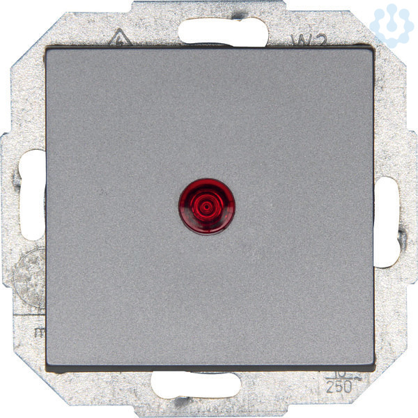 Kontrollschalter (Aus-/Wechselschalter), mit Linseund eingesetzter Glimmlampe (beleuchtet) im Desig n ATHENIS und der Farbe stahlfarben mit einer Nennspannung von 250V~ sowei einem Schaltvermögen von 10AX. Schutzart IP20