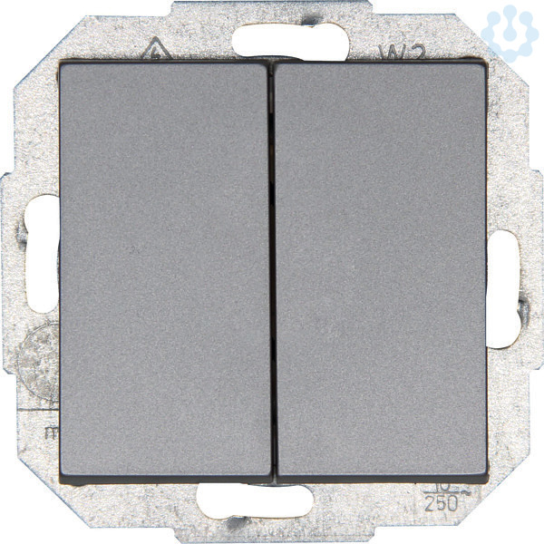 Serienschalter im Design ATHENIS und der Farbe Stahlfarben mit einer Nennspannung von 250V~ sowei einem Schaltvermögen von 10AX. Schutzart IP20