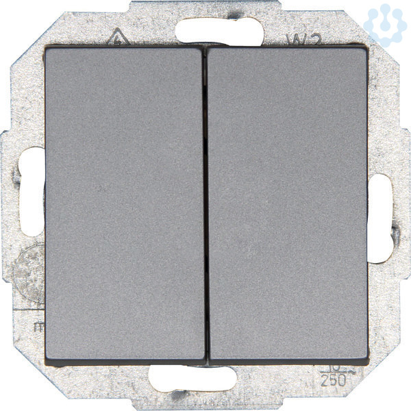 Wechsel/Wechselschalter im Design ATHENIS und der Farbe Stahlfarben mit einer Nennspannung von 250V~sowei einem Schaltvermögen von 10AX. Schutzart IP 20