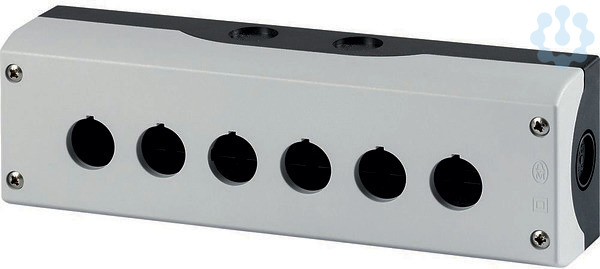 Aufbaugehäuse, Gehäuse: Kunststoff, mit Edelstahlschrauben, individuell beschriftbar mit Pushbutton Konfigurator, Einbaustellen: 6, Leitungseinführung: rückseitig: 2 x M20, oben: 2 x M20, seitlich: 2 x M20/M25 (je Seite 1 x), Farbe RAL-Wert: RAL 7035, Farbe: Gehäuseunterteil anthrazit, Anbindung an SmartWire-DT: nein, verwendbar für: 6 x 22,5, verwendbar für: (Leucht)-Drucktasten, (Leucht)-Wahltasten, Schlüsseltasten, Leuchtmelder, NOT-HALT-/NOT-AUS-Tasten mit gelbem Schild