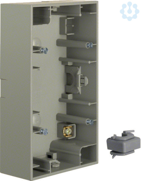Aufputz-Gehäuse 2fach K.5 edelstahl, lackiert. Aufputz-Rahmen 2-fach für senkrechte Montage, mit Leitungs- und Kanaleinführung, Einführung oben, unten und je Seite mittig möglich. Für Montage auf entflammbaren Untergrund geeignet, Flächenprogramm. Mit dem Aufputz-Rahmen können Unterputz-Apparate zur Aufputz-Installation verwendet werden. Material: Kunststoff, Thermoplast, bruchsicher, halogenfrei.