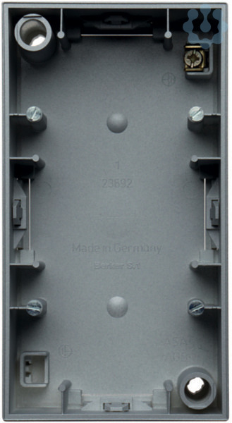 Aufputz-Gehäuse 2fach Q.3 alu samt lackiert. Aufputz-Rahmen 2-fach für senkrechte und waagerechte Montage, mit Leitungs- und Kanaleinführung, Einführung oben, unten und 2 x je Seite möglich, Flächen-/Designprogramm. Mit dem Aufputz-Gehäuse können Unterputz-Apparate zur Aufputz-Installation verwendet werden. Material: Kunststoff, Duroplast, halogenfrei.