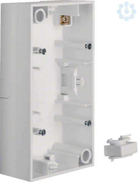 Aufputz-Gehäuse 2fach S.1 polarweiß, glänzend. Aufputz-Gehäuse für senkrechte und waagerechte Montage, mit Leitungs- und Kanaleinführung. Mit dem Aufputz-Gehäuse können Unterputz-Apparate zur Aufputz-Installation verwendet werden (Boden geschlossen). Standardprogramm, 2-fach. Material: Kunststoff, Thermoplast, bruchsicher, halogenfrei.