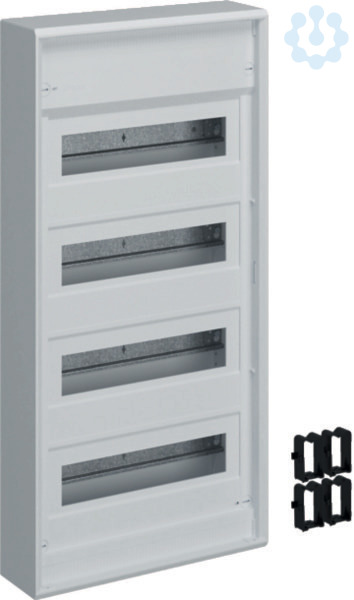 Kleinv.,Volta,APV,4x12PLE,IP30,ohne Tür. Installationskleinverteiler Aufputz aus Kunststoff, nach DIN VDE 60670-24 und DIN 43871, geeignet zum Einsatz in Wohngebäuden nach DIN 18015. Zum Einbau von Geräten bis 63 A mit max. 70 mm Einbautiefe nach Maßnorm DIN 43880. Bemessungsspannung 400V/50Hz. Schutzart IP30, Schutzklasse II schutzisoliert. Bestehend aus Kunststoffbodenplatte mit serienmäßigem Leitungsabfang, Geräteträger aus verzinktem Stahlblech und DIN Hutschiene zum Einbau von Modulargeräten nach DIN 43880. Geräteabdeckung aus Kunststoff mit 46 mm Geräteschlitz, serienmäßig plombierbar. Fingersichere PE/N-Klemme mit Stecktechnik in montagefreundlicher Schnapptechnik und N-Klemme für FI-Kreise. Hinweis: Tür aus Stahlblech ist nicht enthalten (Zubehör).