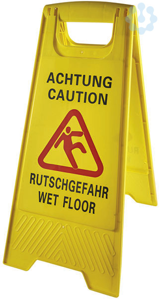 beschriftet, strapazierfähig und abwaschbar, mit Warnhinweis als Text und Symbol Aufdruck: Achtung Rutschgefahr Farbe: gelb Material: Kunststoff Maße (BxH): 30,5 x 62 cm