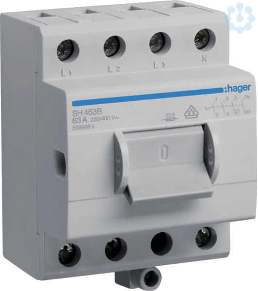 Kompaktschalter 63A 4 Schließer 400V AC mit Zusatzklemme 3,5PLE. Ausschalter 63 A im Kompaktgehäuse nach DIN EN 60669-1 (VDE 0632-1) mit VDE Zeichen, Berührungsschutz nach DIN VDE 0106-100.
