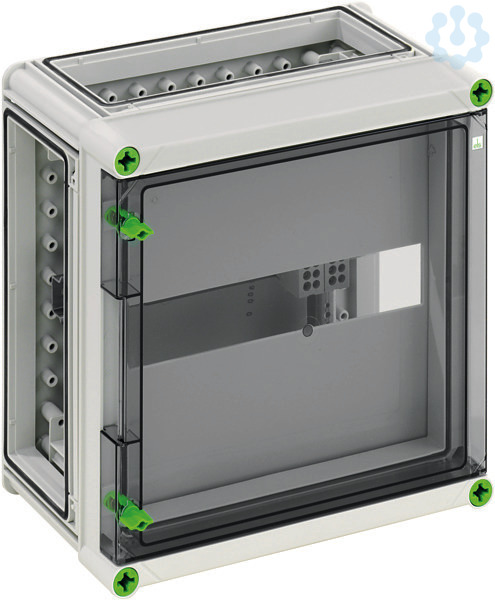 Automatengehäuse, Industrie Qualität, 1-reihig, serienmäßig plombierbar, mit 35mm Normschiene zum Einbau eines selektiven Hauptschalters, inkl. 2 einpoligen HA-Klemmen 25/16qmm für N und PE, Abdeck- und Beschriftungsstreifen, 3 x Gehäuseverbinder (GGV), mit transparenter Klapptür