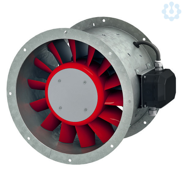 Mitteldruck-Rohrventilator mit zylindrischer Rohrhülse, beidseitigen Flanschen, direkt angetrieben.