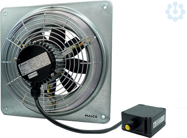Besondere Eigenschaften: Axial-Wandventilator, explosionsgeschützt, Medium Staub. Explosionsschutz und Zulassungen nach ATEX und IECEx. Ex II 2D Ex tb IIIB T135°C/T200°C Db IP64 X / Ex II 2D Ex h IIIB T135°C/T200°C Db X. Für Einsatztemperaturen von -20°C <= Ta <= +40°C. Für alle Stäube der Ex-Gruppe IIIA und IIIB qualifiziert. MAICO Ex-Ventilatoren erfüllen die Sicherheitsanforderungen der Europäischen Richtlinie RL 2014/34/EU für Geräte und Schutzsysteme in explosionsgefährdeten Bereichen. Für Zonen 21 und 22. Zündschutzarten: t- Schutz durch Gehäuse und c - konstruktive Sicherheit. Schutzart IP64. Schutzgitter auf der Saugseite, Berührungsschutz gemäß DIN EN ISO 13857. Für Be- oder Entlüftung umschaltbar. Einbau in jeder Lage möglich. Typenreihe: DZQ...-Ex t mit quadratischer Wandplatte. DZS...-Ex t mit Stahlwandring. Laufrad: Axiallaufrad aus leitfähigem Kunststoff. Wuchtgüte der Motor-Laufradkombination G 6,3 nach Kategorie BV-3 gemäß ISO 14694. Förderrichtung: Die Förderrichtung ist gekennzeichnet, Motor