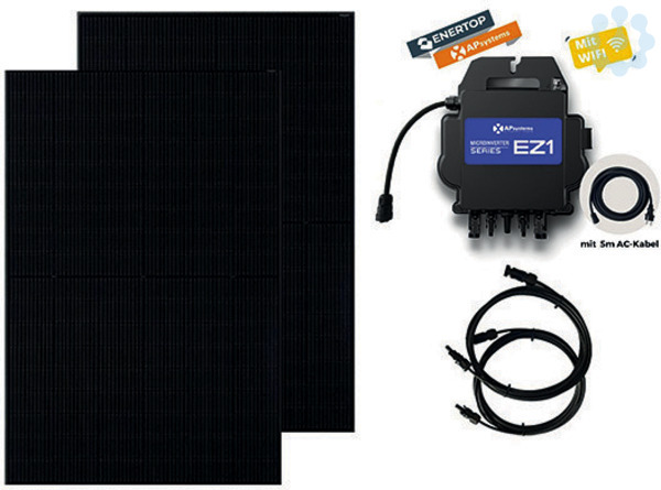 2x JASolar Modul 405Wp 1x APsystems Wechselrichter 600/800W WLAN-fähig und Bluetooth incl. 5m. AC-Kabel 2x 2m Solarmodul Verlängerungskabel