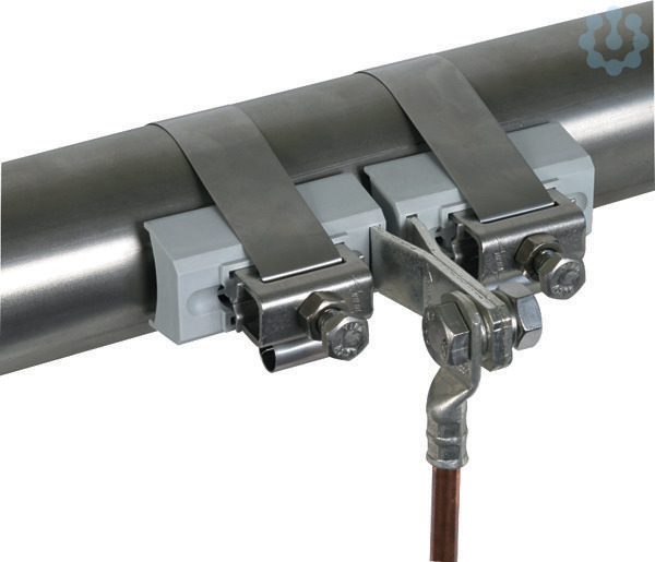 Bandrohrschelle für Ex-Bereiche, zur elektrischen Kontaktierung von Rohren im Ex-Bereich, zur Umsetzung des Blitzschutz-Potentialausgleichs nach DIN EN 62305-3 (VDE 0185-305-3). Für den Einsatz in den explosionsgefährdeten Bereichen Ex-Zonen 1 und 2 (Gase, Dämpfe, Nebel) sowie Ex-Zonen 21 und 22 (Stäube). Geprüft nach der Explosionsgruppe IIB und nach DIN EN 62561-1. Erhebliche Einsparung von Montagezeit ? Außerbetriebsetzen der Anlage / Bereiche bedingt durch Schweiß- oder Bohrarbeiten ist nicht mehr notwendig. Ausführung Typ EX BRS 90, für den Klemmbereich D27-89 mm.