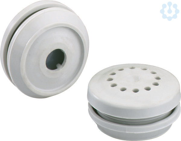 Belüftungsstopfen IP44 mit Labyrinthdichtung zur Vermeidung von Kondenswasserbildung in Gehäusen, Durchfluss 100l/min. bei 0,1 bar Überdruck, thermoplastisches Elastomer, grau, empfohlene Montage an den Gehäuseseiten links und rechts in verschiedenen Höhen (siehe Technischer Anhang-Schutz gegen Kondenswasser), für Wandstärken 1,5-4,5mm, grau