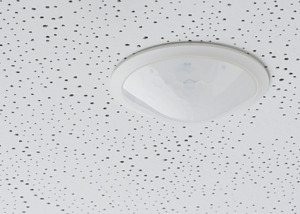 Bewegungsmelder für Deckeneinbau, Erfassungsbereich rund, automatische helligkeitsabhängige Steuerung für Beleuchtung und HKL, Mischlichtmessung, Ausschaltverzögerung einstellbar, Empfindlichkeit einstellbar, Werte voreingestellt (fernparametrierbar)