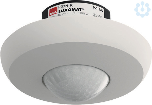 Fernbedienbarer Decken-Bewegungsmelder, Ein Kanal zum Schalten von Licht, Spezielles optisches System für die Erfassung selbst kleinster Bewegungen, Unterbrechungsfreie Parallelschaltungserkennung von mehreren Meldern., Manuelles Schalten über Taster möglich, Weitere Funktionen über optionale Fernbedienung einstellbar, Werkseinstellung 10 min und 500 Lux