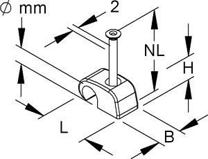 Krallenschelle, mit vormontiertem Nagel Ø 2 mm, halogenfrei. Abmessungen (ca. Maße) H x B x L : 10 x 8,5 x 19 mm für Kabel-Ø : 7 - 12 mm Anzahl der Leitungen : 1 Nagellänge NL : 35 mm Werkstoff : PP (Polypropylen) Werkstoff Nagel : Stahl, galvanisch verzinkt Farbton : lichtgrau RAL : 7035 (ähnlich)