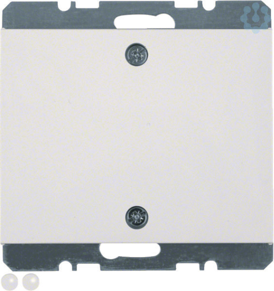 Blindverschluss mit Zentralstück und Schraubbefestigung K.1 polarweiß, glänzend. Blindverschluss mit Zentralstück und Schraubbefestigung auf Tragplatte, mit großem Ausschnitt. Für individuelle Ausschnitte und Bohrungen bei Installation von Sonderlösungen, mit Einbauraum für zusätzliches Relais usw. mit Abdeckstopfen für Anschraubung. Unterputz-Installation, Flächenprogramm. Material: Kunststoff, Thermoplast, bruchsicher, hochglänzende Oberfläche, halogenfrei.