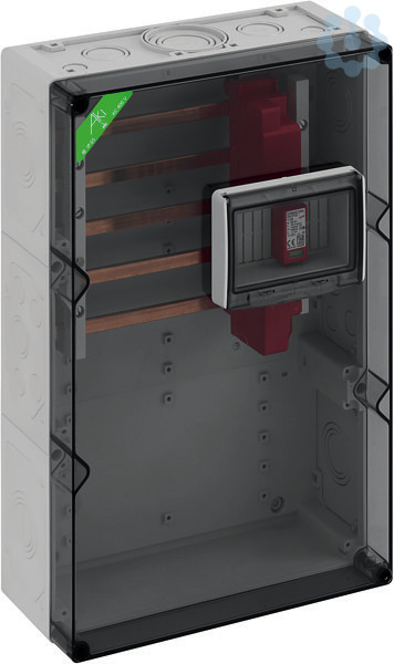 Überspannungsschutzgehäuse, Industrie Qualität, 5-polig, 40mm Sammelschienenabstand, mit CU-Schienen, L1...L3: 12 x 5mm, PE/N: 12 x 5mm, mit 10 Sammelschienenklemmen für CU-Leiter 4-35qmm, mit Klappfenster 6 TE, mit transparentem Deckel, plombierbar, mit Blitzstrom- und Überspannungs-Ableiter Typ 1+2 nach EN 61643-11 für Hauptstrom-Versorgungssysteme, Netzform TT/TNS, für den Einsatz bei Gebäuden ohne äußeren Blitzschutz, Blitzstrom: (10/350) 7,5/30kA, höchste Dauerspannung: 255 V AC, max. zul. Vorsicherung: 160A gG, anschlussfertig montiert auf Sammelschienensystem