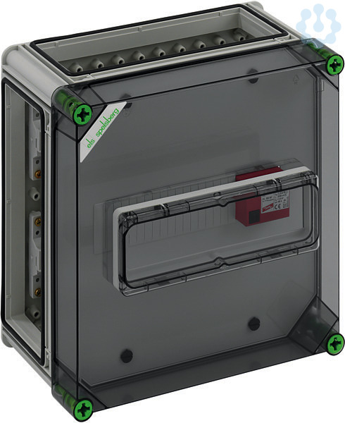 Sammelschienengehäuse, Industrie Qualität, 5-polig, 40mm Sammelschienenabstand, mit CU-Schienen, L1...L3: 12 x 5mm, PE/N: 12 x 5mm, mit 10 Klemmen für CU-Leiter 4-35qmm, mit Berührungsschutzabdeckung, mit Klappfenster 12 TE, plombierbar, 1x Abdeckstreifen 12TE verriegelbar, 3 x Gehäuseverbinder (GGV), mit transparentem Deckel, mit Blitzstrom- und Überspannungs-Ableiter Typ 1+2 nach EN 61643-11 für Hauptstrom-Versorgungssysteme, Netzform TT/TNS, für den Einsatz bei Gebäuden mit äußerem Blitzschutz (BSK III/IV), Blitzstrom: (10/350) 12,5/50kA, höchste Dauerspannung: 255 V AC, max. zul. Vorsicherung: 160A gG, anschlussfertig montiert auf Sammelschienensystem