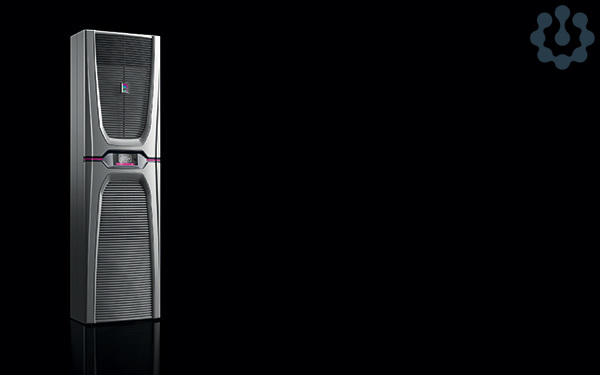 Der Rittal TX CableNet Schaltschrank in Einzelzeilen vor einem dunkelvioletten Hintergrund