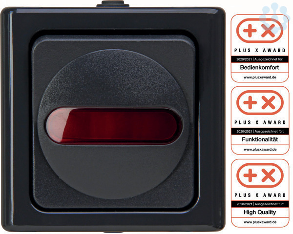 Aufputz-Feuchtraum Kontrollschalter (Aus-/Wechselschalter) im Design BLUE ELECTRIC, mit Linse und eingesetzter Glimmlampe (beleuchtet), Schaltvermögen 10AX, Nennspannung 250V~, Schutzart IP44, Farbe: anthrazit