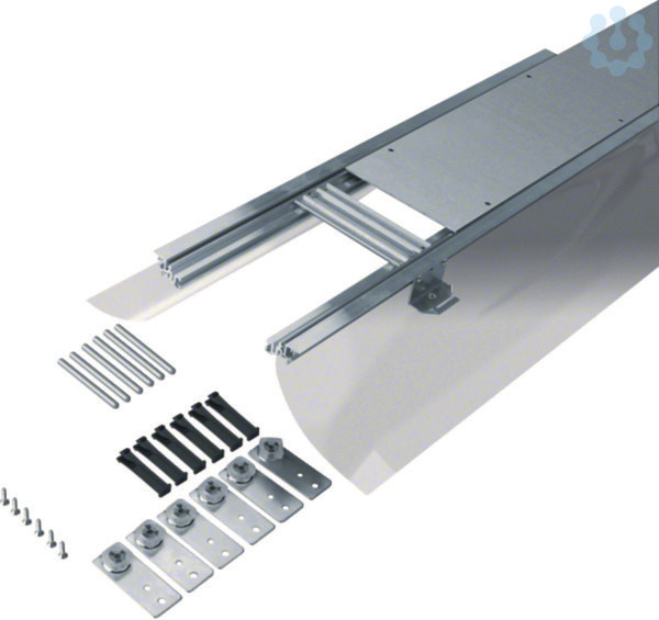 Bodenkanal estrichbündig mit Folie Stahlblech BKF 200x(45-70)mm. Estrichbündiger Installationskanal nach DIN EN 50085-1 und DIN EN 50085-2-2, mit flexibler Folienschalung, bestehend aus: Kanalseitenprofilen aus Aluminium, Traversen, Estrichankern, Bodenbelagsanlegeprofilen (0 oder 4 mm) aus Kunststoff, Nivellierschellen mit Kanalverbindern und Nivellierstiften, verschraubten Blinddeckeln, geeignet für trockengepflegte Böden, akustisch entkoppelt, werkseitig vormontiert.