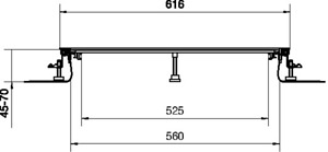 Bodenkanal estrichbündig mit Folie Stahlblech BKF 600x(45-70)mm. Estrichbündiger Installationskanal nach DIN EN 50085-1 und DIN EN 50085-2-2, mit flexibler Folienschalung, bestehend aus: Kanalseitenprofilen aus Aluminium, Traversen, Estrichankern, Bodenbelagsanlegeprofilen (0 oder 4 mm) aus Kunststoff, Nivellierschellen mit Kanalverbindern und Nivellierstiften, verschraubten Blinddeckeln, geeignet für trockengepflegte Böden, akustisch entkoppelt, werkseitig vormontiert.