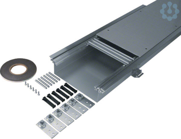 Bodenkanal estrichbündig mit Wanne/Dichtmöglichkeit Stahl BKWD 300x(80-120)mm. Estrichbündiger Installationskanal nach DIN EN 50085-1 und DIN EN 50085-2-2, mit Dichtungsmöglichkeit für Blinddeckel und Abdeckungen, mit Bodenwanne, bestehend aus: Kanalseitenprofilen aus Aluminium, Traversen, Estrichankern, Bodenbelagsanlegeprofilen (0 oder 4 mm) aus Kunststoff, Nivellierschellen mit Kanalverbindern und Nivellierstiften, verschraubten Blinddeckeln, geeignet für trockengepflegte Böden, akustisch entkoppelt, werkseitig vormontiert.
