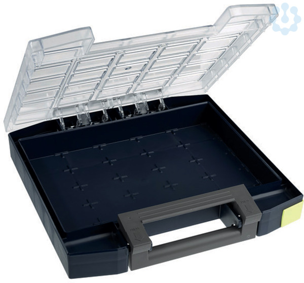 Die boxxser-Serie besteht aus 6 Koffervarianten in 2 unterschiedlichen Höhen, gefertigt aus stoßfestem und bruchsicherem Polycarbonat in einer Doppelwandkonstruktion, Profilraster in Deckel und Boden sichern den Kofferinhalt beim Transport, zwei feste Unterteilungen (neben dem Griff) bieten Raum für die Aufbewahrung von Kleinteilen oder Zubehör. Die integrierten Bodenprofilführungen schützen und sichern den Sortimentskoffer beim Stapeln. Griff mit integrierter Verriegelungssicherung verhindert das Öffnen des Koffers beim Tragen. inkl. 3 x Beschriftungsclips (rot, blau, gelb), 5 x 5 Fächerraster, ohne Einsätze