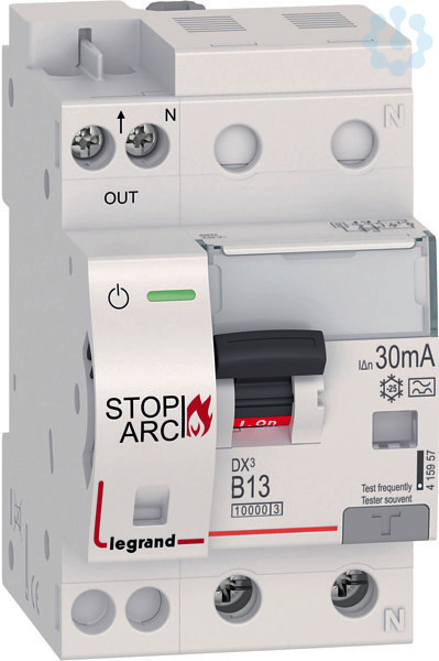 Gleichfehlerströme, unverzögert, Bemessungsfehlerstrom Idn 30 mA, Stoßstromfest bis 250 A. LS-Schutzschalterteil: B-Charakteristik, Bemessungsstrom In 13 A, Bemessungsschaltvermögen Icn 10 kA nach EN 61009-1, Bemessungsspannung Un 230 VAC, Bemessungsfrequenz 50 Hz, Energiebegrenzungsklasse 3, Befestigung auf Hutprofilschiene EN 60715 durch rastende Schnellbefestigungen, klare Information vorne auf jedem Gerät, eindeutige Schaltstellungsanzeige rot/grün am Schalthebel , mit Beschriftungsfenster, Neutralleiteranschluss rechts, verschienbar mit Legrand Gabelkammschienen. Anbau von Hilfsgeräten möglich. Auslöseanzeige: gelb=Fehlerstrom-oder Prüftastenauslösung, farblos= Kurzschluss-oder Handauslösung. Der Brandschutzschalter DX3 STOP ARC ist eine Gerätekombination aus Fehlerlichtbogen ? Schutzeinrichtung