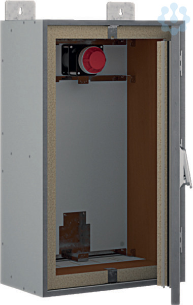 Brandschutzschrank, univers, 1048 x 648 x 349 mm, 30 Minuten. Elektro-Brandschutz-Wandschrank F30 zur Befestigung an der Wand zur Sicherung von Flucht- und Rettungswegen (Brandlastdämmung), vorbereitet zum Aufbau einer Niederspannungsverteilung bis 630A. geeignet für den Funktionserhalt von sicherheitstechnischen Anlagen im Brandfall über 30 Minuten. Das Gehäuse ist aus nichtbrennbarem Baustoff der Klasse A2 ? s1, d0 gefertigt, IP44, Schutzklasse II, Farbe ähnlich RAL7035 und Leitungseinführungen oben/unten. Allgemeine bauaufsichtliche Zulassungen (DIBt): Z-86.1-86. Wandschrank bestehend aus Leer-Gehäuse, Befestigungslaschen und Befestigungsmaterial. Tür ein- oder zweitürig in den Korpus einschlagend mit Türanschlag rechts oder links wechselbar, Öffnungswinkel 180°. Tür mit Schwenkhebel, Türverschluss über Schubstange mit 2-Punkt-Verriegelung und mit DIN Halbzylinder Doppelbart, austauschbar, Türbänder aus Edelstahl. Rückwand mit aktivem Belüftungssystem 230V AC kaltrauchdicht, im Brandfall selbst abschaltend