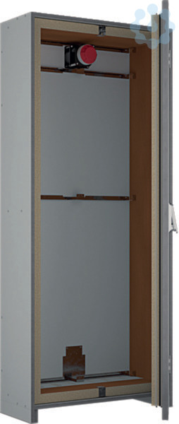 Brandschutzschrank, univers, 2048 x 898 x 349 mm, 30 Minuten. Elektro-Brandschutz-Standschrank F30 zur Aufstellung an der Wand oder frei im Raum (Freiaufstellung) durch zusätzliche Rückwand (optional) zur Sicherung von Flucht- und Rettungswegen (Brandlastdämmung), vorbereitet zum Aufbau einer Niederspannungsverteilung bis 630A. geeignet für den Funktionserhalt von sicherheitstechnischen Anlagen im Brandfall über 30 Minuten. Das Gehäuse ist aus nichtbrennbarem Baustoff der Klasse A2 ? s1, d0 gefertigt, IP44, Schutzklasse II, Farbe ähnl. RAL7035 und Leitungseinführungen oben/unten. Allgemeine bauaufsichtliche Zulassungen (DIBt): Z-86.1-86. Standschrank bestehend aus Leer-Gehäuse, Sockel mit abnehmbare Sockelblende unterfahrbar (z.B. mit Hubwagen), Befestigungslaschen und Befestigungsmaterial. Tür ein- oder zweitürig in den Korpus einschlagend mit Türanschlag rechts oder links wechselbar, Öffnungswinkel 180°. Tür mit Schwenkhebel, Türverschluss über Schubstange mit 2-Punkt-Verriegelung und mit DIN Halbzylinder D