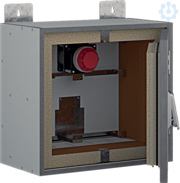 Brandschutzschrank, univers, 598 x 648 x 349 mm, 30 Minuten. Elektro-Brandschutz-Wandschrank F30 zur Befestigung an der Wand zur Sicherung von Flucht- und Rettungswegen (Brandlastdämmung), vorbereitet zum Aufbau einer Niederspannungsverteilung bis 630A. geeignet für den Funktionserhalt von sicherheitstechnischen Anlagen im Brandfall über 30 Minuten. Das Gehäuse ist aus nichtbrennbarem Baustoff der Klasse A2 ? s1, d0 gefertigt, IP44, Schutzklasse II, Farbe ähnlich RAL7035 und Leitungseinführungen oben/unten. Allgemeine bauaufsichtliche Zulassungen (DIBt): Z-86.1-86. Wandschrank bestehend aus Leer-Gehäuse, Befestigungslaschen und Befestigungsmaterial. Tür ein- oder zweitürig in den Korpus einschlagend mit Türanschlag rechts oder links wechselbar, Öffnungswinkel 180°. Tür mit Schwenkhebel, Türverschluss über Schubstange mit 2-Punkt-Verriegelung und mit DIN Halbzylinder Doppelbart, austauschbar, Türbänder aus Edelstahl. Rückwand mit aktivem Belüftungssystem 230V AC kaltrauchdicht, im Brandfall selbst abschaltend