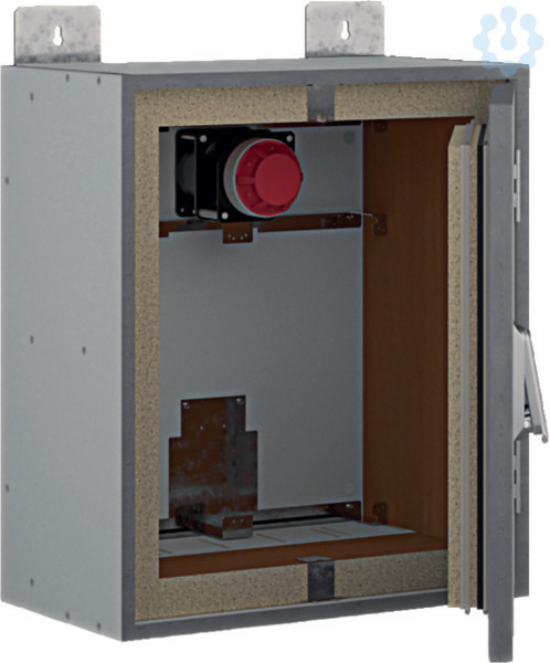 Brandschutzschrank, univers, 748 x 648 x 349 mm, 30 Minuten. Elektro-Brandschutz-Wandschrank F30 zur Befestigung an der Wand zur Sicherung von Flucht- und Rettungswegen (Brandlastdämmung), vorbereitet zum Aufbau einer Niederspannungsverteilung bis 630A. geeignet für den Funktionserhalt von sicherheitstechnischen Anlagen im Brandfall über 30 Minuten. Das Gehäuse ist aus nichtbrennbarem Baustoff der Klasse A2 ? s1, d0 gefertigt, IP44, Schutzklasse II, Farbe ähnlich RAL7035 und Leitungseinführungen oben/unten. Allgemeine bauaufsichtliche Zulassungen (DIBt): Z-86.1-86. Wandschrank bestehend aus Leer-Gehäuse, Befestigungslaschen und Befestigungsmaterial. Tür ein- oder zweitürig in den Korpus einschlagend mit Türanschlag rechts oder links wechselbar, Öffnungswinkel 180°. Tür mit Schwenkhebel, Türverschluss über Schubstange mit 2-Punkt-Verriegelung und mit DIN Halbzylinder Doppelbart, austauschbar, Türbänder aus Edelstahl. Rückwand mit aktivem Belüftungssystem 230V AC kaltrauchdicht, im Brandfall selbst abschaltend