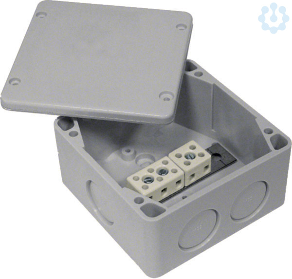 Brandschutz-Verbindungsdose, E90, 115x115x66mm, mit Keramikklemmen. Elektro-Brandschutz-Verbindungsdose F90/E90 zur Aufputz-Montage zur Sicherung von Flucht- und Rettungswegen. Prüfungen: Brandkammertest bei einer amtlichen Materialprüfanstalt wurde durchgeführt. Die Anforderungen nach der MLAR (Muster-Leitungsanlagen-Richtlinie 2005) sind erfüllt. Allgemeine bauaufsichtliche Zulassungen (DIBt): Feuerwiderstandsklasse entsprechend einer Feuerwiderstandsdauer nach DIN 4102-2 (F90) sowie in Anlehnung an DIN 4102-12 (E90) Funktionserhalt elektrischer Leitungen. Quadratische Verbindungsdose mit 5-polige Klemmleiste bis 16 mm², Kabeleinführungen von 4 Seiten möglich und Befestigungsmaterial.