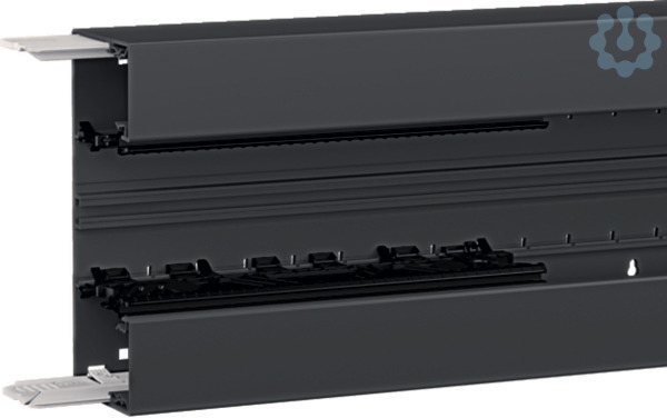 Brüstungskanal-Unterteil Profil Geräteeinbau BRN 65x170mm aus PVC in gsw. Kanalunterteil zum Elektro-Installationskanal-System Brüstungskanal aus Kunststoff nach DIN EN 50085-1 als Geräteeinbaukanal mit Oberteilbreite 80 mm, abnehmbare Seitenoberteile zur einfachen und schnellen Leitungsverlegung sowie Nachbelegung. Systemträger zur Teilung des Grundprofils in drei separate Bereiche: zwei getrennte Leitungsführungskammern sowie einen Geräteeinbaubereich. Mit Bodenlochung (allseitiger Bohrtolleranzausgleich) zur direkten Wandmontage und zusätzlicher Rechtecklochung zur werkzeuglosen Befestigung des Kanals mittels Clip-Technik auf Konsolen. Mit frontrastendem, werkzeuglosem Geräteeinbau zur Befestigung von Geräten und Geräteeinbaudosen mit Schnellbefestigung. Zusätzliches C-Profil als Geräteeinbaumöglichkeit. Kupplungen zur einfachen und passgenauen Kanalmontage, Trennwände und Leitungsrückhalteklammern als Zubehör erhältlich. Hinweis: Schall- und Brandschutz-Maßnahmen sind fachgerecht auszuführen.