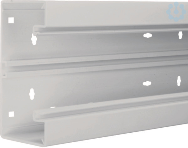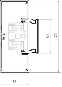 Brüstungskanal-Unterteil frontrastend zu BR 68x170mm Oberteil 80mm verkehrsweiß. Kanalunterteil zum Elektro-Installationskanal-System Brüstungskanal aus Kunststoff nach DIN EN 50085-1 als Geräteeinbaukanal mit Oberteilbreite 80 mm zum Einbau handelsüblicher Geräte ohne Zusatzblenden. Mit Bodenlochung (allseitiger Bohrtolleranzausgleich) zur direkten Wandmontage und zusätzlicher Rechtecklochung zur werkzeuglosen Befestigung des Kanals mittels Clip-Technik auf Konsolen. Mit frontrastendem, werkzeuglosem Geräteeinbau zur Befestigung von Geräten und Geräteeinbaudosen mit Schnellbefestigung. Zusätzliches C-Profil als Geräteeinbaumöglichkeit. Kupplungen zur einfachen und passgenauen Kanalmontage, Trennwände und Leitungsrückhalteklammern als Zubehör erhältlich. Hinweis: Schall- und Brandschutz-Maßnahmen sind fachgerecht auszuführen.